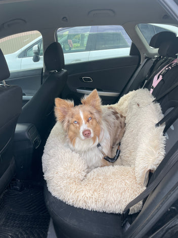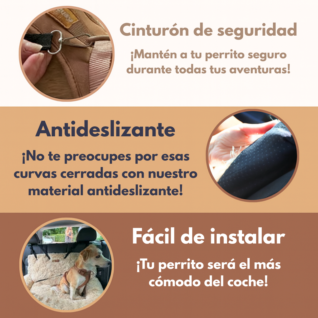 Más que una cama, su rincón favorito en el coche. Protege tu asiento, mima a tu perro y viajen felices juntos. 🐶❤️